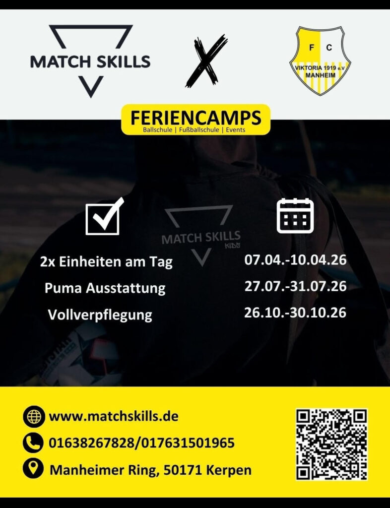 gemeinsam mit unserem Partner, der Fußballschule MATCH SKILLS, veranstalten wir auch dieses Jahr wieder unser Ostercamp , unser Sommercamp , sowie unser Herbstcamp (jeweils in der 2. Ferienwoche).